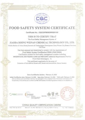 公司通過了ISO9001:2015、HACCP認(rèn)證和FSSC22000等質(zhì)量安全管理體系認(rèn)證。